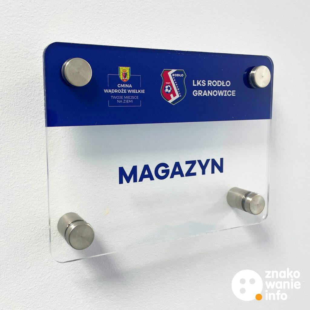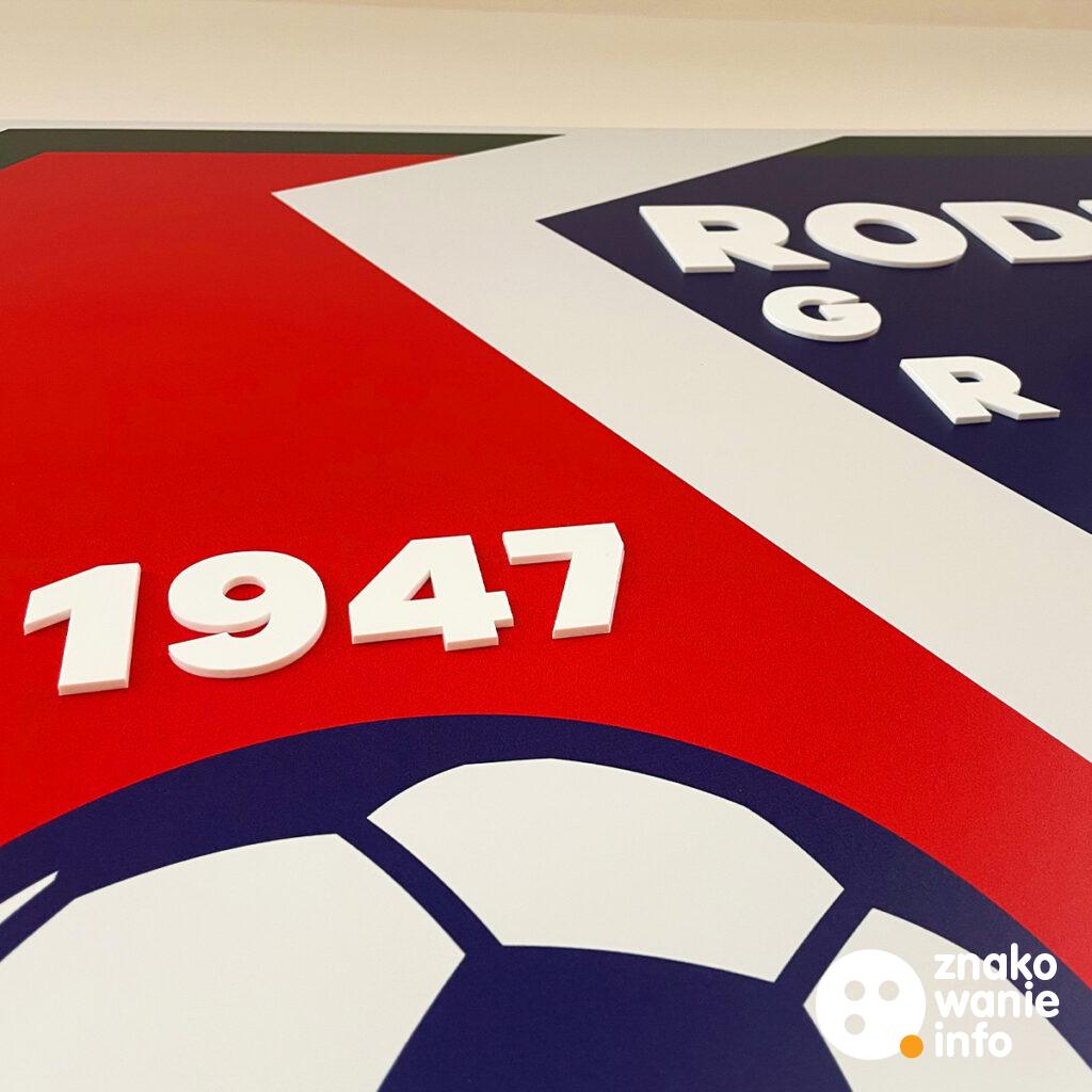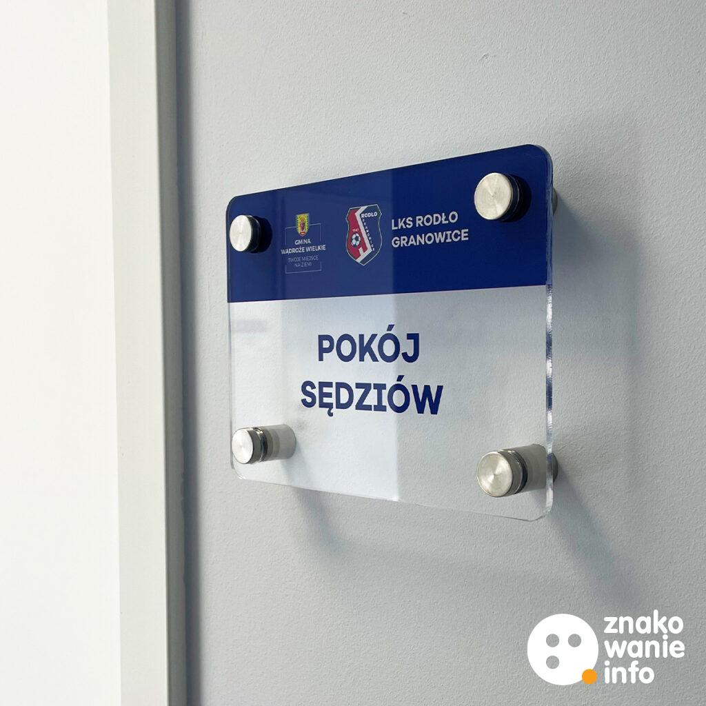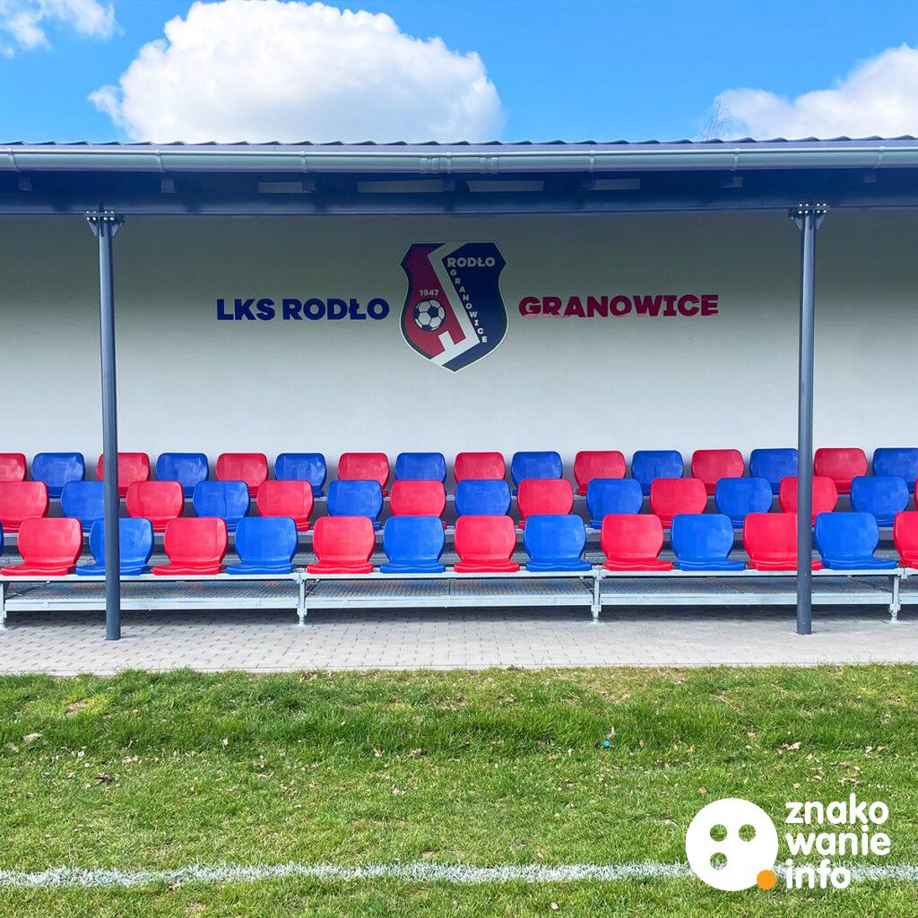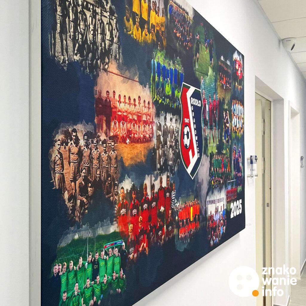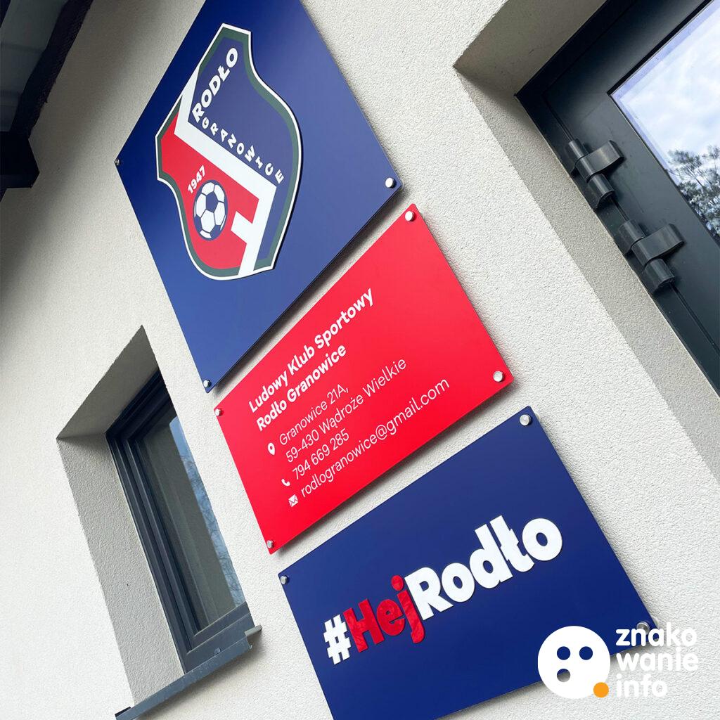 W ramach kompleksowego oznakowania dla LKS Rodło Granowice wykonaliśmy m.in.: tabliczki i tablice informacyjne, magnetyczną tablicę trenerską, liternictwo naścienne oraz szyldy, a także podświetlaną tablicę ze zdjęciami drużyny dawnych lat.