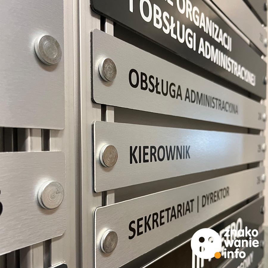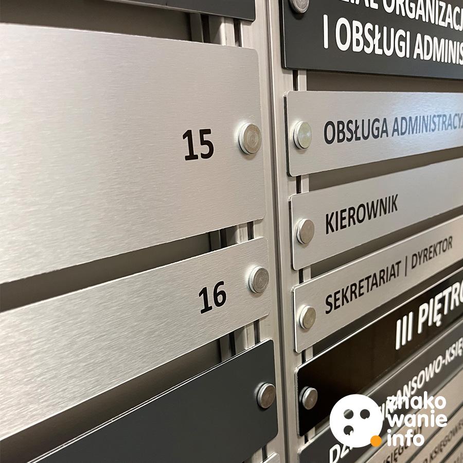 - opcjonalne wersje tablic z alfabetem Braille’a, projektowane w orientacji poziomej, aby zachować odpowiednią wysokość zasięgu dłoni zgodną z ustawą o dostępności,