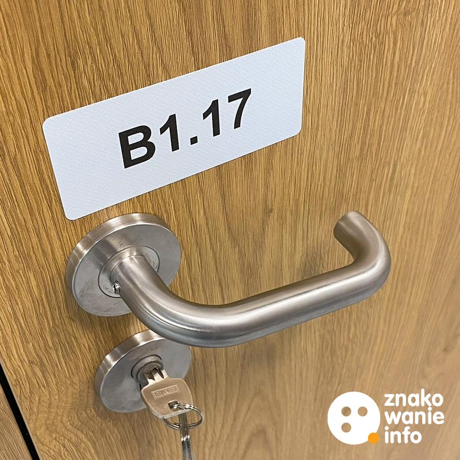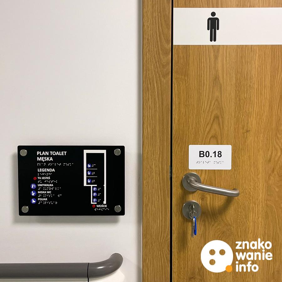 – oznakowanie pomieszczeń: tabliczki przydrzwiowe, naklejki nadklamkowe,