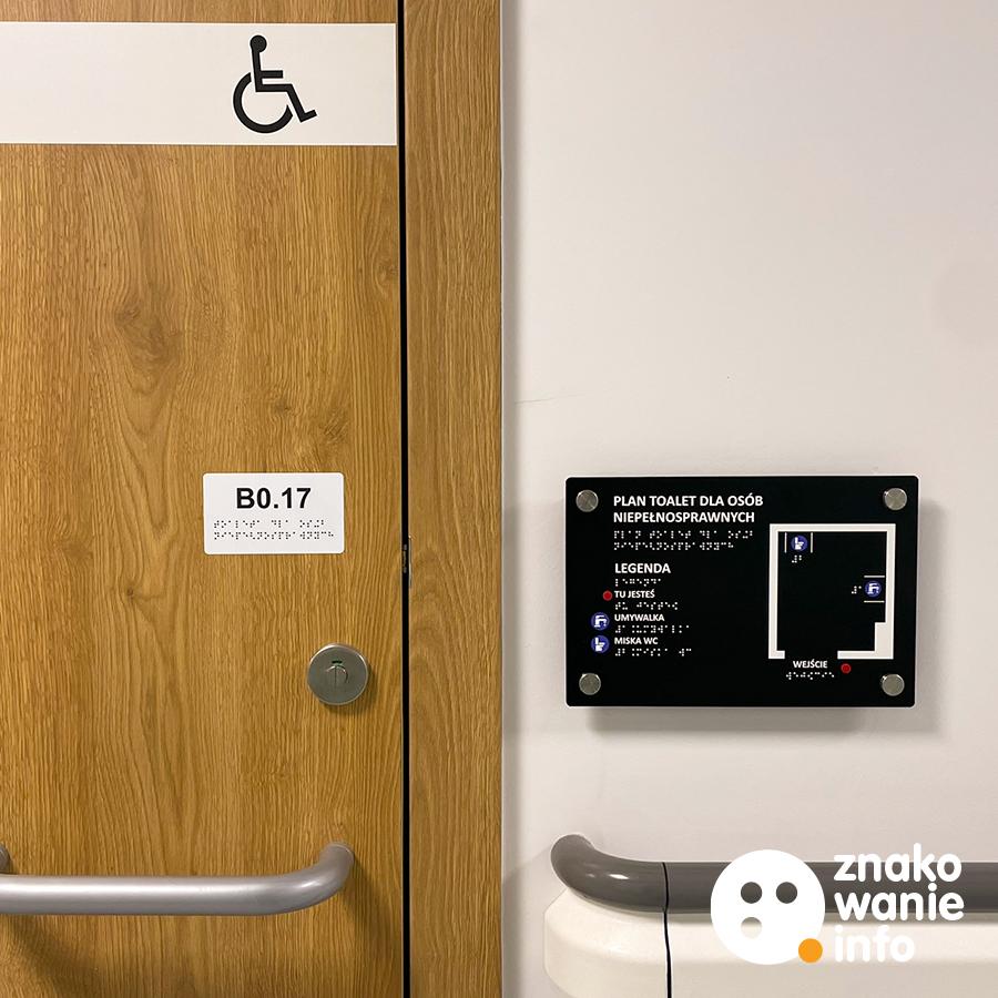 W ramach kompleksowego oznakowania budynku został wykonany szereg udogodnień dla osób z niepełnosprawnościami: